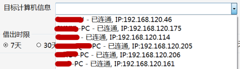 点击“借出许可”进入许可借出页面,点击“查看我能连接的计算机”,从下拉菜单查找是否有需要借出许可的目标计算机,如果有请直接查看第3步,如果没有,请进入下一步。